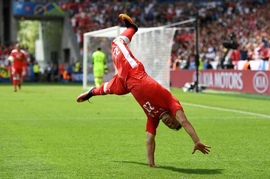 利希施泰纳左路传中被塞费罗维奇漏过,德尔迪约克背身扛住后卫做球,沙奇里右侧禁区边缘腾身左脚倒钩入近角,1比1,他成为第6位欧洲杯进球的瑞士球员。[/p]